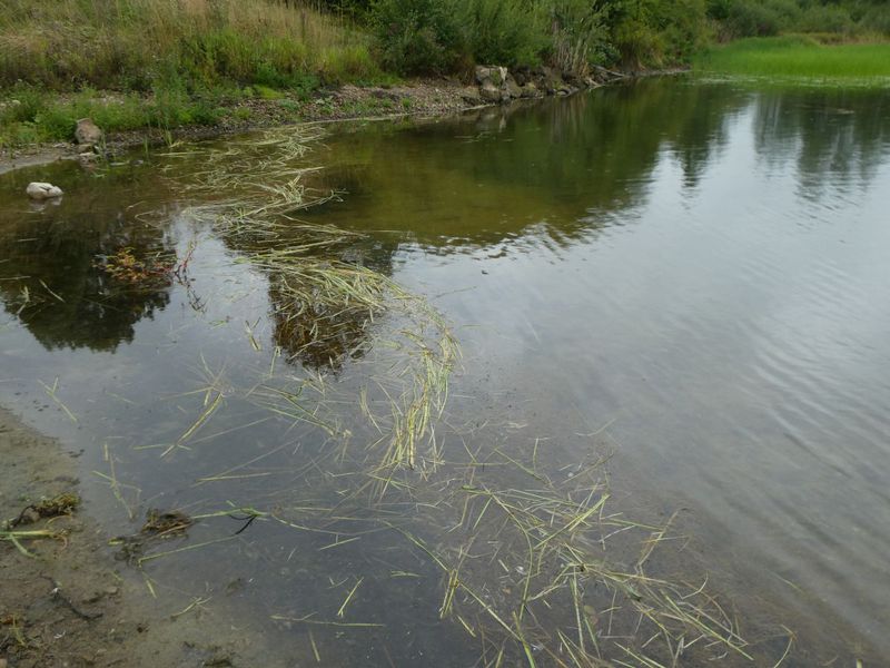 Es gibt im See in USH immer noch viel Bewuchs auf der ehemaligen Wasserfläche, viele treibende Halme und fieses Kraut.