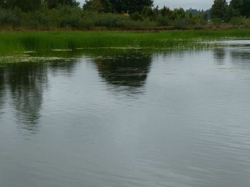 Aber der Bewuchs zwischen der Einsetzstelle und der Insel ist üppig.
